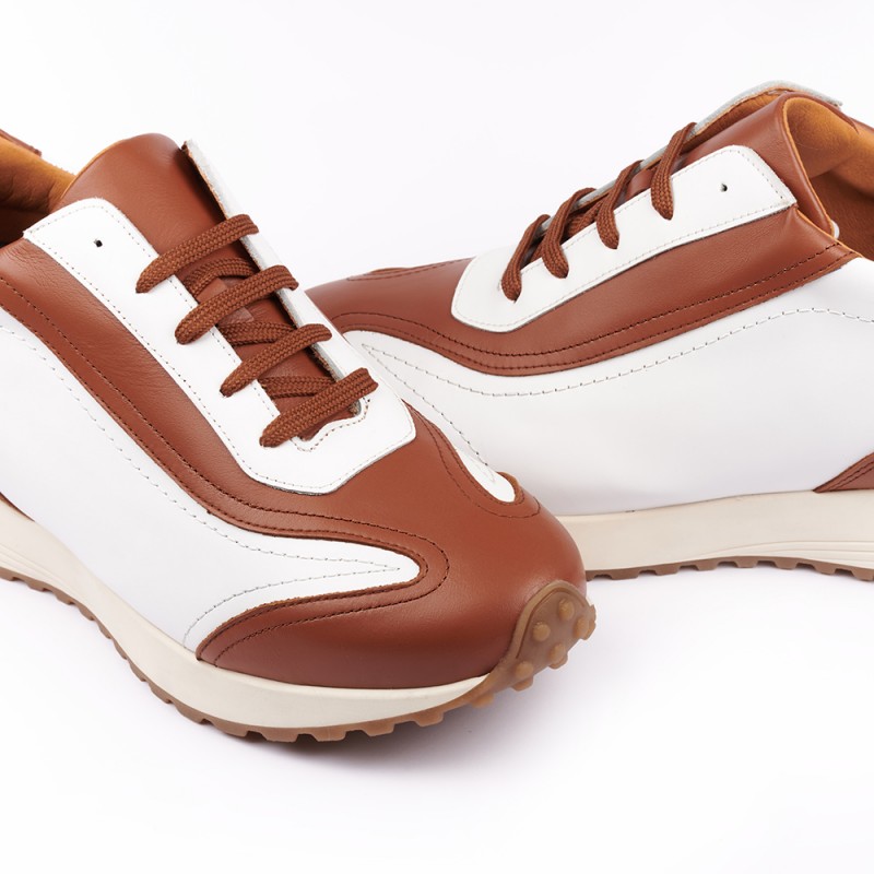 Features: The Delta Brown sneakers are characterized by their high-quality full-grain leather exterior in two colours and a finely lined interior. Furthermore, the special sole not only provides a distinctive look but also ensures you don't feel tired, as it is breathable and comfortable for extended wear. They can be paired with jeans, tweed dress pants, and even sportswear.
