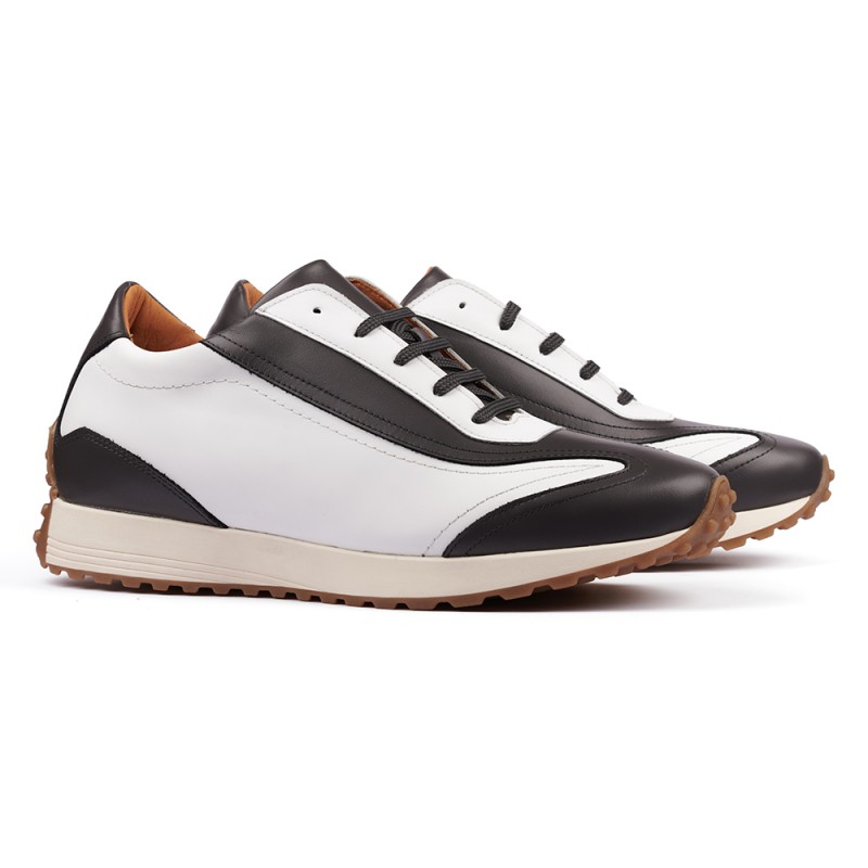 Sneakers con rialzo. Esterno in pelle fiore di prima qualità. Interno foderato in pelle fine.
