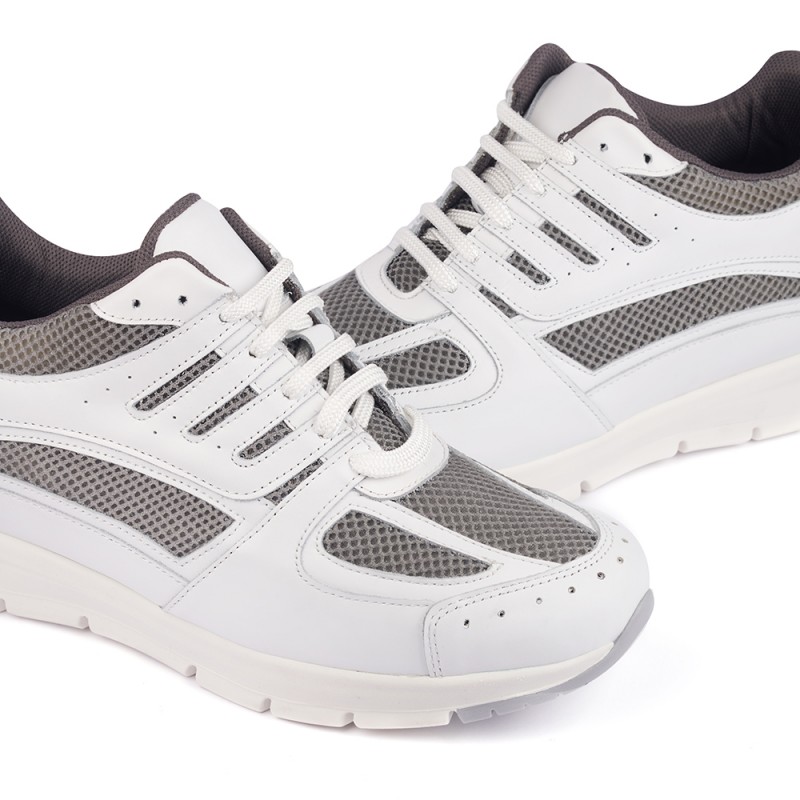 Sapatos com salto interno, de desenho italiano, para um homem de estilo desportivo. Completamente flexíveis. Um modelo desportivo com atacadores e exterior de pele flor natural de primeira qualidade fácil de limpar. Interior têxtil com sola exterior de borracha e fabricado com o sistema Trockenfuss, que absorve o suor e elimina o mau odor. Este calçado é apropriado para combinar com jeans, calças de sarja, calções ou para fazer desporto. Tronisco.com recomenda que trate o seu calçado com um pano e o lave com água fria e sabão neutro, evitando ensopar as sapatilhas. Dica: pode usar os tira-nódoas que utiliza para a roupa.